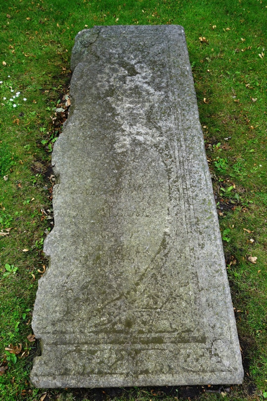 Stenen skulle være solgt til købmand og kirkeværge Søren Ivarsen Milling, d. 1757, og antagelig genanvendt over ham og hustruen Sidse Pedersdatter, d. 1748.